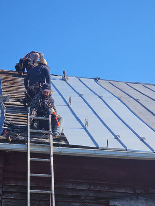 Hand-Seamed Finish: To guarantee a watertight seal and honor traditional building methods, we seamed the new panels to the existing roof both by hand and with a mechanical seamer.