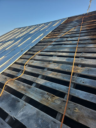 Substrate Preparation: Beneath the metal panels lay the original skip lap sheathing. We inspected and prepared this historical sheathing, securing the existing, undamaged metal panels to ensure a solid foundation.